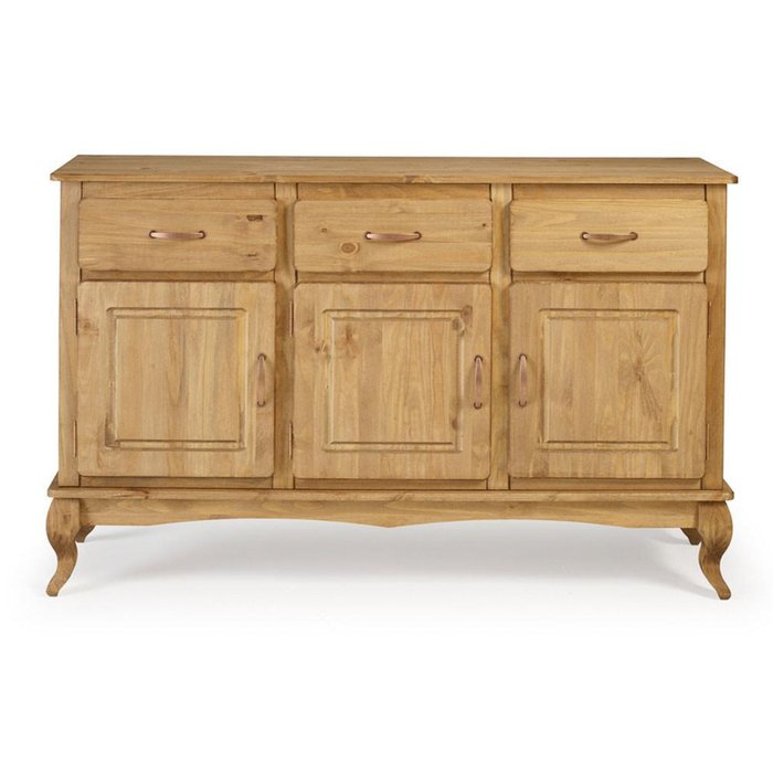 Dimensões do Produto: Largura 144,5 cm; Profundidade 40 cm; Altura 94,2 cm.Itens Inclusos: 1 aparador.- Madeira maciça em Pinus (madeira de reflorestamento)- 03 portas com dobradiças e puxadores metálicos- Acabamento em pintura UV com brilho semi fosco- Design rústico, ideal para trazer personalidade e elegância ao ambiente- 03 gavetas com corrediças em madeira e puxadores metálicos- 01 prateleira interna para melhor organização dos objetos- Pés com design Luis XVComplexidade da montagem: Média, pode ser montado por mais de uma pessoa e/ou necessite de maior conhecimento para montagem.Recomendações de uso, manutenção e limpeza: Limpar com flanela ou pano macio seco, não utilizar produtos abrasivos, desengordurantes, álcool ou solvente. Não expor o produto diretamente a luz solar e à umidadeGarantia: 3 mesesOBS: O produto chegará desmontado novo na caixa, não realizamos o serviço de montagem. Orientamos que ao receber o produto, contrate um profissional de montagem para que seja efetuado a montagem do produto.
