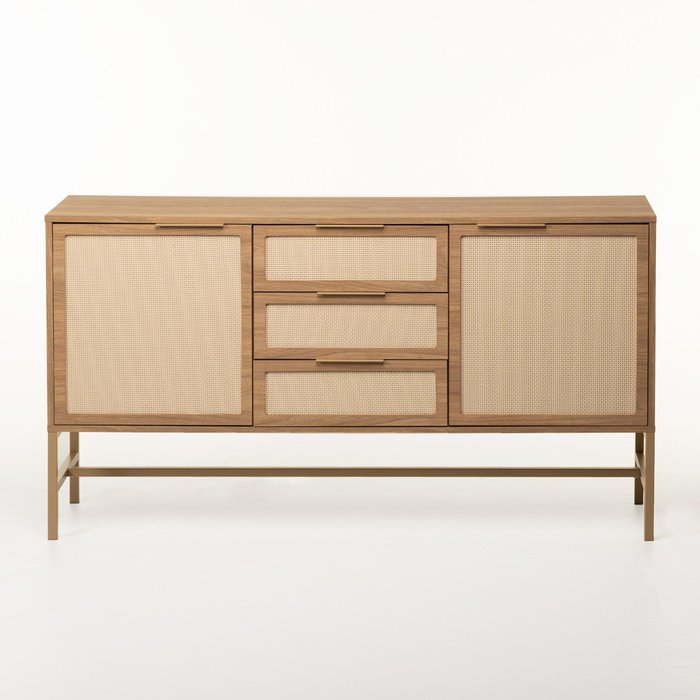 Balcão Square 2 Portas 3 Gavetas 135 Cm X 36 Cm Tauari/dourado - Telinha Rattan Tauari/Dourado - Telinha Rattan