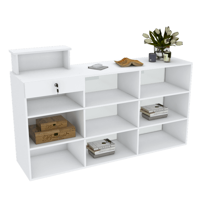 BALCÃO VITRINE P/ FRENTE VIDRO C/ RODÍZIO M320.B (LOJA, COMÉRCIO) MUNDI MOVEIS Branco