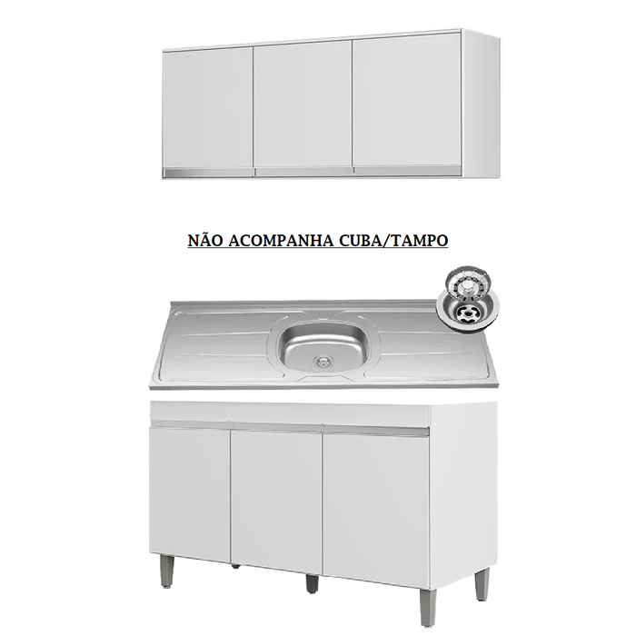 Balcão120 Mt Manu e Armário Aéreo Andréia com Puxadores Embutidos Branco Ajl Branco