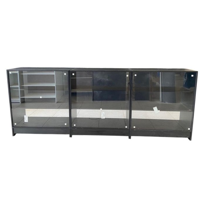 BALCÕES MDF + VIDRO EXPOSITOR LOJAS E COMÉRCIOS PRETO COM 3 - SUPREMA MÓVEIS - DESCRIÇÃO COMERCIAL: Funcional e moderno, ideal para organizar o atendimento do seu comércio. Fabricado 100% em MDF, com prateleiras internas e vidro frontal em 3 módulos. Acabamento de qualidade e excelente aproveitamento de espaço. Medida de cada Módulo 1,00 altura 0,87 largura 0,38 profundidade largura total 2,61 - DETALHE TÉCNICO: Lindo kit de Balcão composto por: 3 Balcões Expositor (já acompanha Vidro) Material de estrutura 100% MDF Medida padrão de cada módulo ( 3 Módulos) 1,00mt altura 0,87mt largura 0,38mt profundidade Largura total do móvel 2,61mts * Medida de cada módulo pode ocorrer variação de centimetros para mais ou para menos* - APLICAÇÃO: - Balcão expositor com vidro - Balcão vitrine - Vitrine pra loja - Vitrine pra farmacia - Expositor de comércios - COMPOSIÇÃO: Mdf - 15mm - GARANTIA: 3 meses de garantia, contra defeitos de fabricação. - MODO DE USAR: Perfeito para lojas, farmácias, papelarias e comércios em geral - CUIDADOS: Limpe com pano úmido, sem produtos químicos. Evite sol, umidade e peso excessivo. Não arraste o móvel. - CONTEÚDO EMBALAGEM: - Vidro frontal - Kit de ferragens (parafusos e pregos) - Tapa furos - Manual de Montagem. - MDF - FICHA TÉCNICA: CÓDIGO INTERNO (SKU): 45P - TIPO: Balcões - CARACTERÍSTICA: MDF + Vidro expositor - MODELO: Lojas e Comércios - UNIDADE VENDA: com 3 - COR: Preto - TAMANHO (A X L X P): 100x261x38cm - MARCA: Suprema Móveis - QUANTIDADE PRATELEIRAS: 6 - POSSUI CHAVE: Não - ACOMPANHA VIDRO: Sim - ESPESSURA MADEIRA: 15mm - NCM: 94036000 - ORIGEM PRODUTO: Nacional - CATEGORIA: Móveis Loja - TIPO EMBALAGEM: Papelão/Plástico Stretch - PRODUTO VIRTUAL: Não - Dimensões Embalagem (AxLxC): 39x100x40cm - PESO TOTAL: 90Kg - TOTAL VOLUMES: 3 - EAN / GTIN: 7898787500621