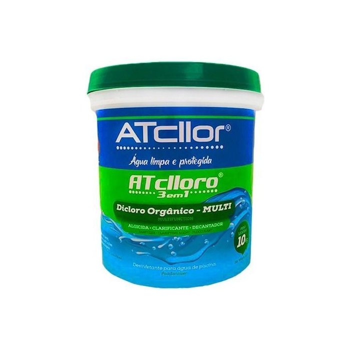 ATclloro 3 em 1 é utilizado em tratamento de águas de piscinas, tendo o poder desinfetante, destruindo os microrganismos.