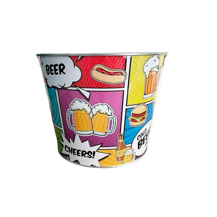 Balde de Gelo para Cerveja Estampado em Metal Galvanizado com Abridor 4,8 Litros