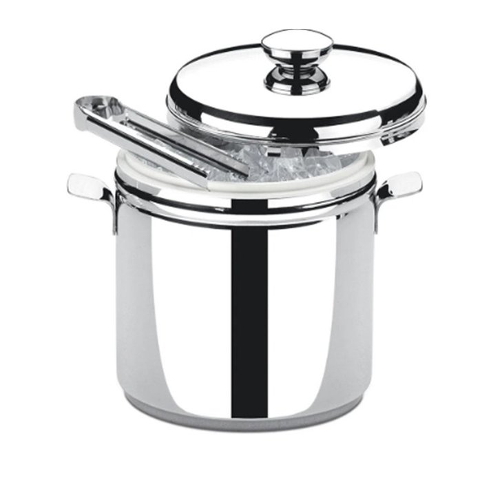 Sua camada interna térmica conserva o gelo por mais tempo. Vem acompanhado de uma pinça, também de Aço Inox.