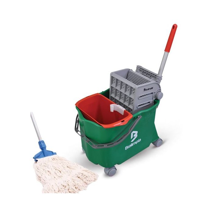 Balde Espremedor Para MOP Úmido DOBLÔ 20 Litros B20FVD Flex VERDE + MOP Úmido Completo (Cabo + Garra + Refil) BRALIMPIA (CABO 3 ESTÁGIOS COM FURO 140 CM - ENVIADO NESSA OFERTA)