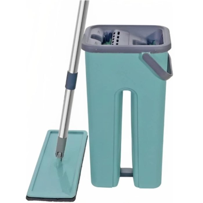 Balde Flat Mop Esfregão Limpa Lava e Seca Rodo Gira 360 Verde