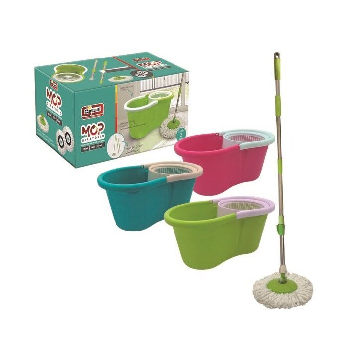 Balde Mop CentrifugO Balde MOP da catuaí oferece a facilidade, proporcionando conforto com suas tarefas de limpeza diárias. Com cabo rosqueável em aço inox e cabeça giratória fica muito fácil o enxágue e secagem de um piso. Capacidade Total 12 Litros Capacidade em Uso 6 litros (conforme adesivo indicativo interno) Possui cabo extensível com rosca Comprimento do cabo 129cm Possui 3 partes rosqueáveis Base do MOP flexível permite alcançar áreas de difícil acesso Ideal para pisos frios, sintéticos ou em madeira Acompanham 2 refis para reposição Marca Catuaí Composição Balde Plástico Cesto da centrifuga Plástico Cabo Aço inox Cabeça giratória Microfibra com base rosqueável em plástico Imagem Meramente Ilustrativa Atenção: Podem haver Variações das Cores de Acordo com a Calibragem de Cada Monitor  Em caso de devolução ou troca o produto deve ser devolvido em sua embalagem original sem sinais ou marcas de uso, fora destas condições o produto será devolvido e não trocado a Esfregão com Refil extra Azul