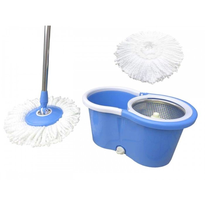 Balde Mop Esfregao Inox com Rodinhas Centrifuga de Limpeza para Casa Azul (bsl-mop-3) Braslu