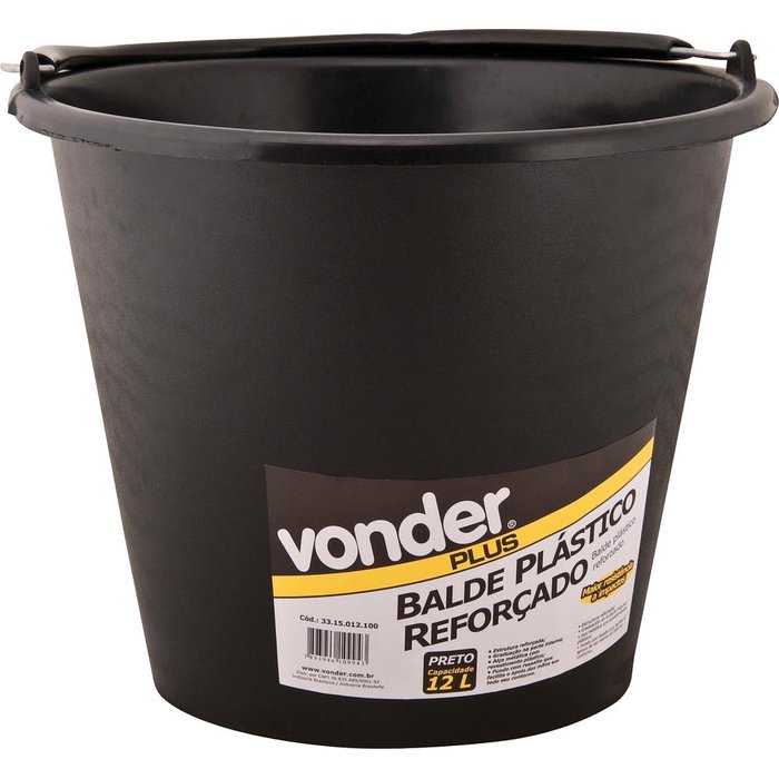 Balde Para Concreto 12 Litros Plástico Graduação, Pegador E