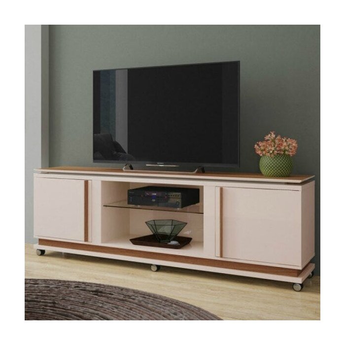 Bancada 2 Portas e 1 Prateleira de Vidro Level Hb Móveis Off White com Nature