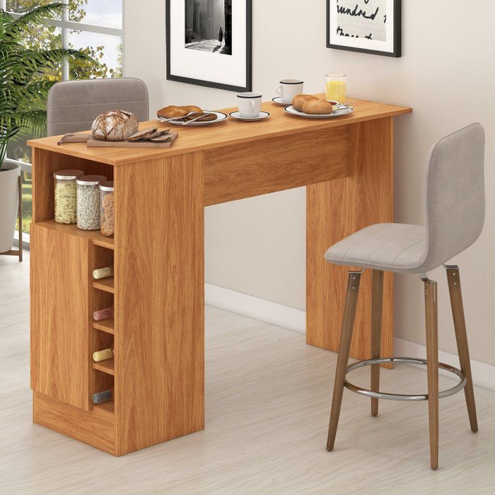 A Bancada Gourmet para Cozinha é o móvel ideal que você está buscando modernidade e praticidade. Perfeita para separar o ambiente da sua cozinha americana e sala. Mas também pode ficar próxima a parede, de acordo com o espaço disponível na sua casa. Possui nicho garrafeiro e porta com prateleira para acomodar mantimentos e demais itens necessários. Também é possível fazer refeições para duas ou três pessoas com amplo espaço superior. Produzida com material de alta qualidade , design moderno e detalhes projetados para trazer praticidade e funcionalidade a você. O acabamento é pintura UV de última geração, produzido com maquinário novo de alta tecnologia, o que garante acabamento impecável e alta durabilidade. Adquira agora mesmo esse excelente móvel! Satisfação garantida!