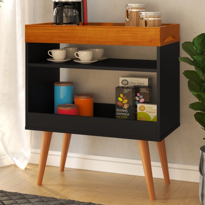 Bancada Café Bari com Prateleira Preto Caramelo Preto Caramelo