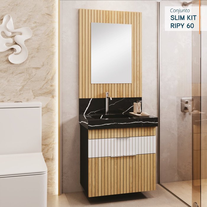 Bancada de Banheiro Lavatório Slim 60 Kit Ripy 60 Cm com Cuba Esculpida - Blu Lavatórios Black