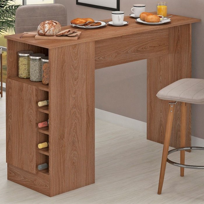 Bancada de Cozinha Penha 1 Porta e Adega Manchester - Panorama Móveis Marrom