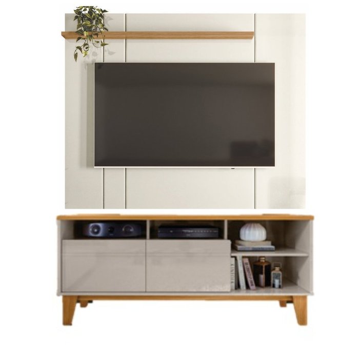 Bancada e Painel para Tv Lewis Off White Perolizado e Tauari Off White Perolizado e Tauari