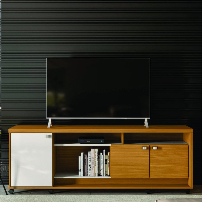 Bancada e Painel para Tv Lewis Tauari Off White Perolizado Tauari Off White Perolizado