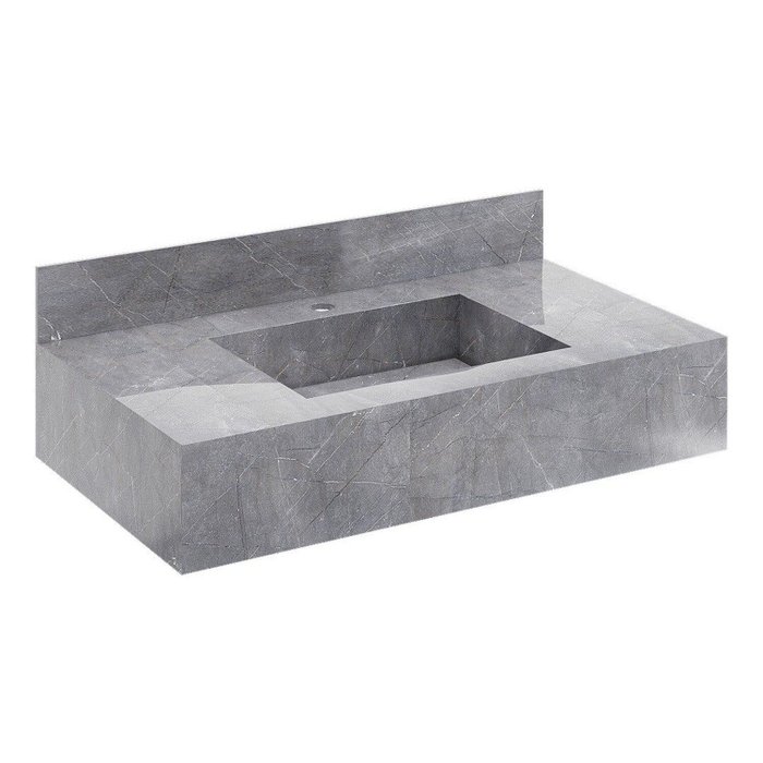 Bancada em Porcelanato para Banheiro Completa Alto Padrão 80cm X 15cm com Cuba Esculpida Lisboa Grafite