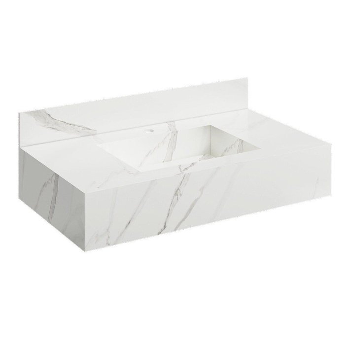 Bancada em Porcelanato para Banheiro Completa Alto Padrão 80cm X 15cm com Cuba Esculpida Lisboa Branco