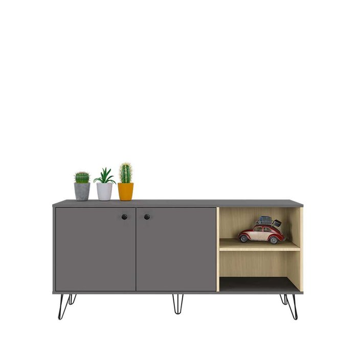 Bancada Ica com 2 Portas para Tv até 50 polegadas Colibri Cinza Fosco Com Tauari Nobre Cinza Fosco Com Tauari Nobre