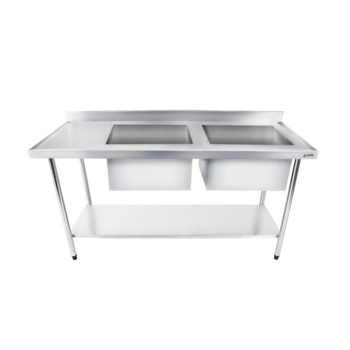 Bancada / Mesa Pia Em Aço Inox com Duas Cubas (50x40x25) A Direita E Prateleira (140x70x85)