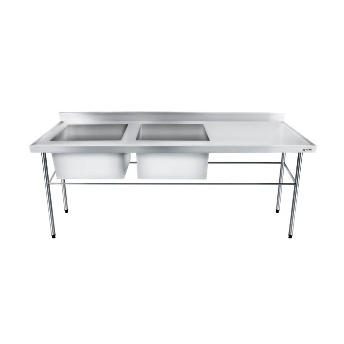 Bancada / Mesa Pia Em Aço Inox com Duas Cubas (50x40x25) A Esquerda (180x60x85)