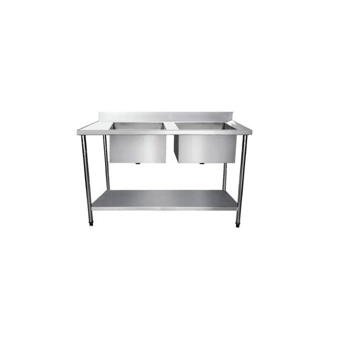 Bancada / Mesa Pia Em Aço Inox com Duas Cubas (56x34x14) A Esquerda E Prateleira (140x60x85)