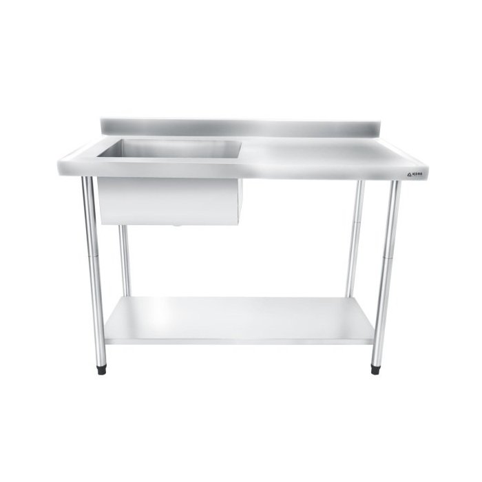 Bancada / Mesa Pia Em Aço Inox com Uma Cuba (50x40x25) A Esquerda E Prateleira (100x60x85)