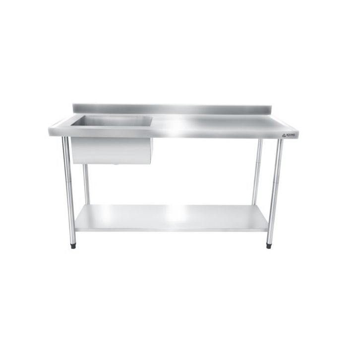 Bancada / Mesa Pia Em Aço Inox com Uma Cuba (50x40x25) A Esquerda E Prateleira (160x70x85)