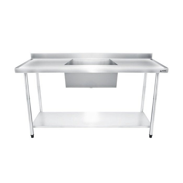 Bancada / Mesa Pia Em Aço Inox com Uma Cuba (50x40x25) Ao Centro E Prateleira (170x60x85)