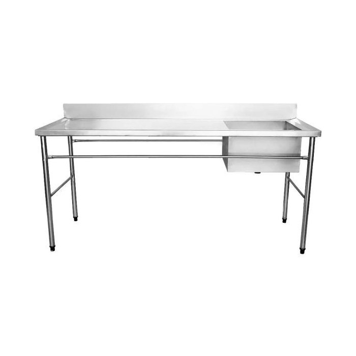 Bancada / Mesa Pia Em Aço Inox com Uma Cuba (56x34x14) A Direita (140x70x85)