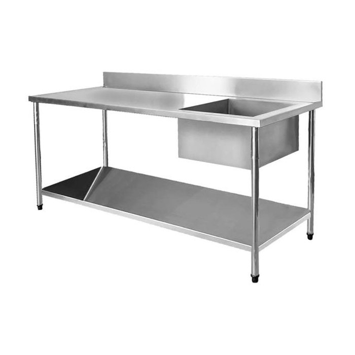 Bancada / Mesa Pia Em Aço Inox com Uma Cuba (56x34x14) A Direita E Prateleira (150x70x85)