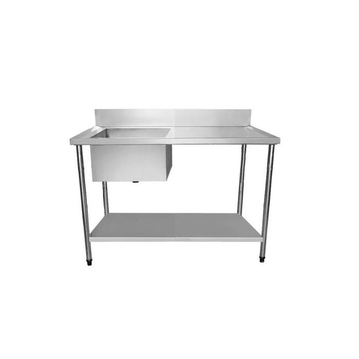 Bancada / Mesa Pia Em Aço Inox com Uma Cuba (56x34x14) A Esquerda E Prateleira (130x60x85)
