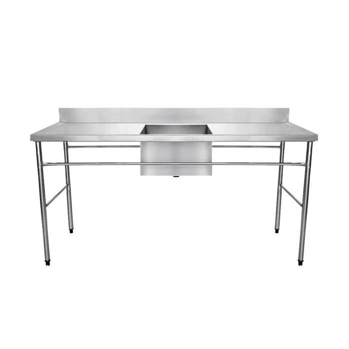 Bancada / Mesa Pia Em Aço Inox com Uma Cuba (56x34x14) Ao Centro (110x60x85)