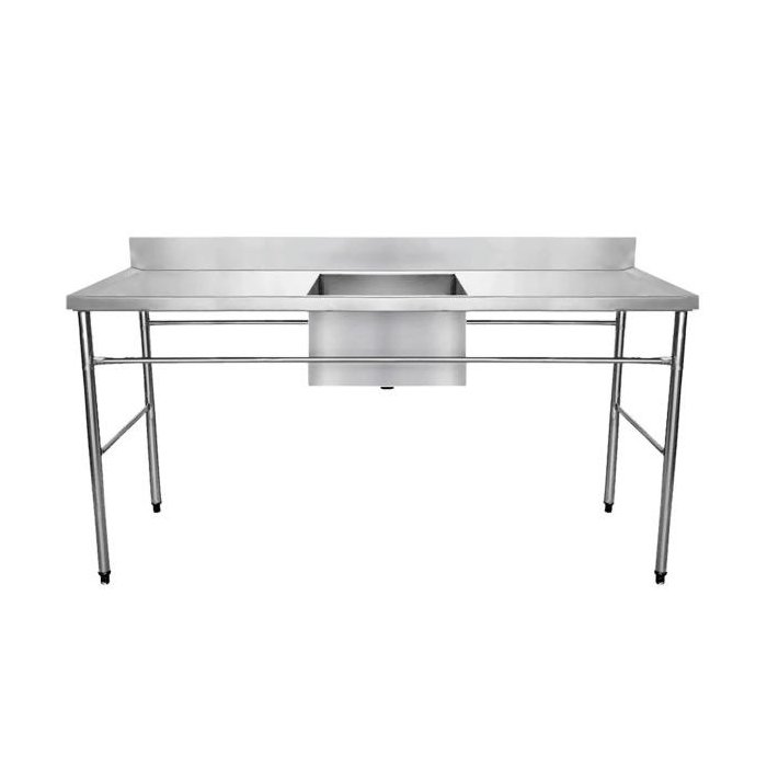 Bancada / Mesa Pia Em Aço Inox com Uma Cuba (56x34x14) Ao Centro (160x60x85)