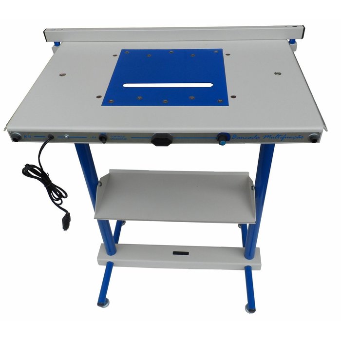 Bancada Multifunção K2 - Completa, com 5 Placas Adaptadoras Kerbus bege textura , com detalhes em azul