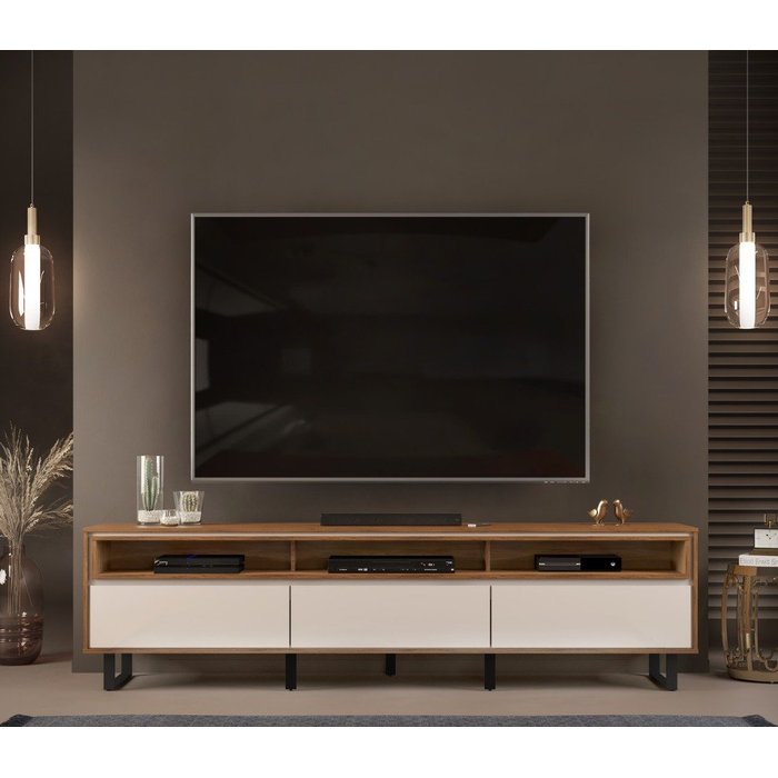 Bancada Ômega Off White / Freijó com 2,26m Para TV Até 75" DJ Móveis DJ Moveis
