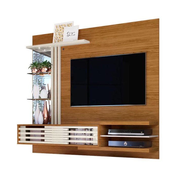 Bancada Painel Suspenso Frizz Supreme para Tv até 55 Polegadas com Prateleiras de Vidro e Luminár