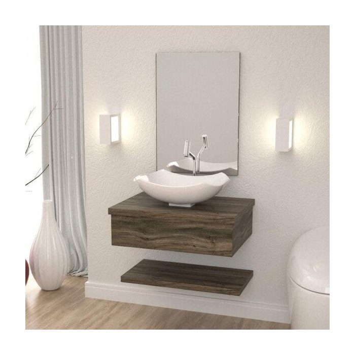 Bancada para Banheiro com Cuba Abaulada L42 Prateleira e Espelheira 606w Metrópole Carvalho Dark