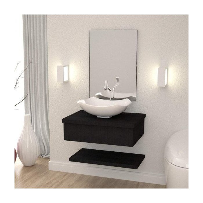 Bancada para Banheiro com Cuba Abaulada L42 Prateleira e Espelheira 606w Metrópole Preto Ônix