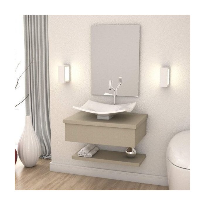 Bancada para Banheiro com Cuba Folha F44 Prateleira e Espelheira 606w Metrópole Compace Connect Nude