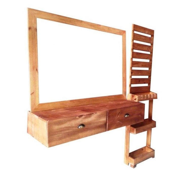 CARACTERÍSTICASMadeira Maciça: Móveis de Madeira Maciça são aqueles que, como o nome diz, são feitos da madeira pura, sem adição de fibras sintéticas ou aglomerados. Eles em sua natureza são mais resistentes e costumam ser bem mais pesados. Móveis de madeira maciça são mais resistentes a danos como riscos e arranhões, e também podem ser recuperados facilmente.Produto ideal para barbearias ou salões de beleza. Anúncio é composto por uma moldura para colocar espelho, um gaveteiro para utilizar de bancada e um porta máquinas.