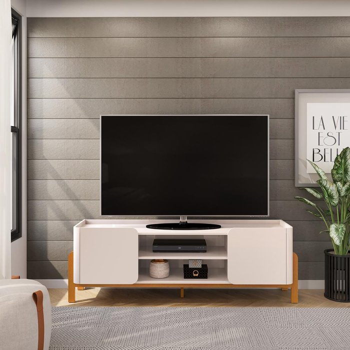 Bancada para Tv até 65 Polegadas com 2 Portas Dj Móveis Cher Off White Cedro