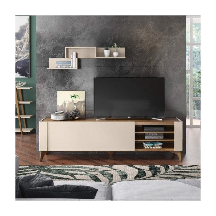 Bancada para TV até 72 Polegadas Líder Design Éden Caemmun Off White/Buriti
