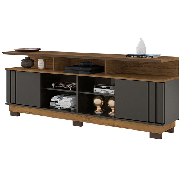 Bancada para TV até 75" Columbus L01 Grafite/Freijó - ADJ Decor