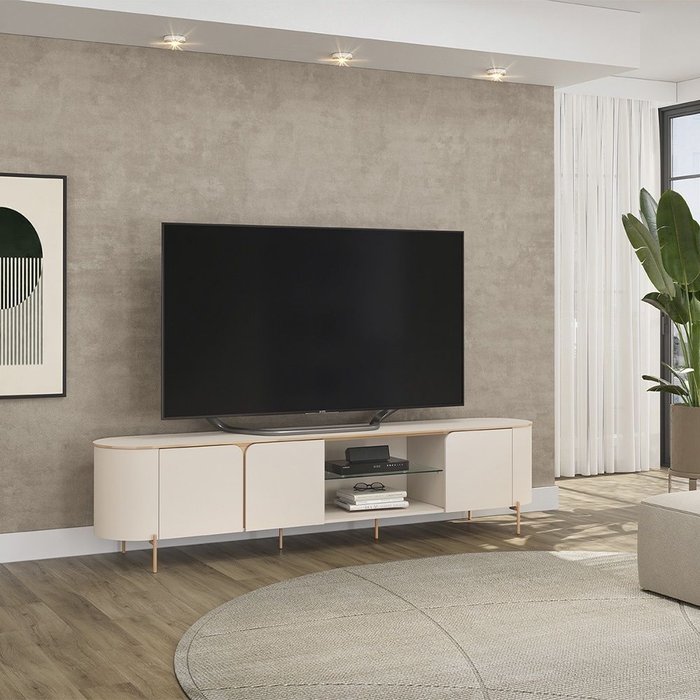 Bancada para Tv até 75 Polegadas com 3 Portas Ariana Off White Dj Móveis