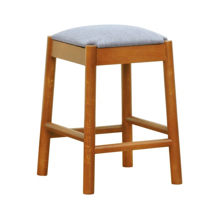 Banco Baixo Amber Madeira Maciça Assento Estofado Linho Impermeável Amêndoa/Cinza