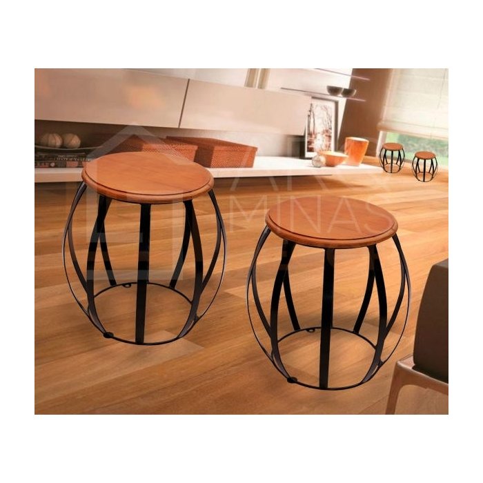 Banco Barril Ferro e Madeira Para Sala/ Quarto/ Varanda