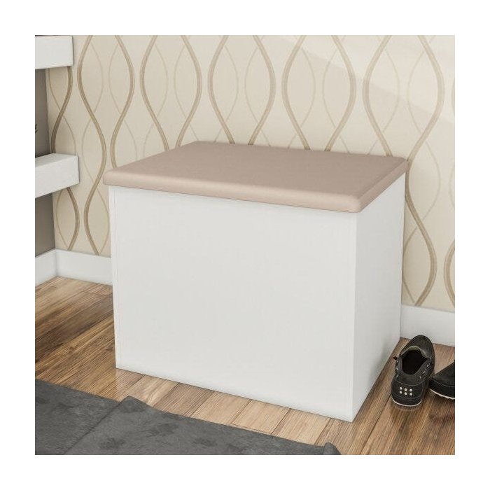 Banco Baú com Assento Estofado AM3043 Movelbento Branco