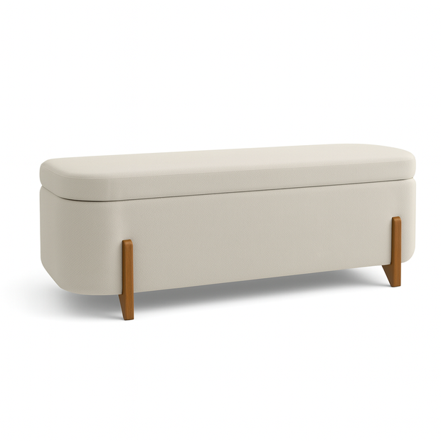 Este banco baú une estilo, praticidade e conforto em um único móvel. Perfeito para ser usado como peseira de cama, banco de apoio ou organizador, ele oferece um design sofisticado em tecido estofado e pés de madeira, que agregam charme e elegância ao ambiente.