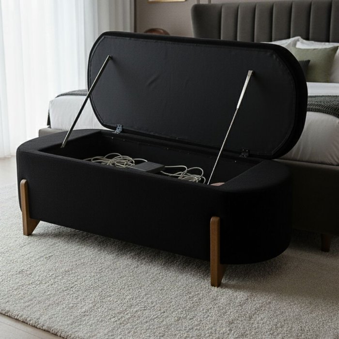 Banco Baú Organizador Estofado Orgânico Milão Peseira 1,40 Bouclê Preto - Montanari's Decor